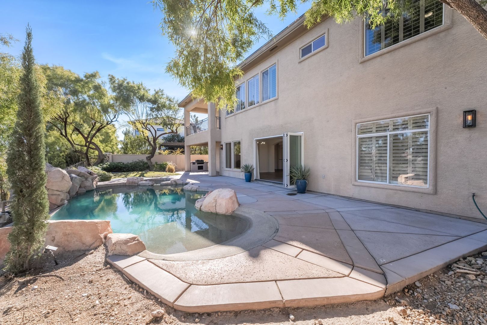 xperience the pinnacle of Summerlin living in this meticulously upgraded two-story masterpiece. Located within the prestigious, guard-gated enclave of Queensridge. 3-car garage with EV Electric Car Charger, Solar System for energy efficiency, Outdoor Living featuring a private pool, jacuzzi, Bifold doors create a fluid indoor/outdoor entertaining experience. This home is designed for both grand entertaining and intimate relaxation. The gourmet kitchen, featuring top-tier appliances and a layout that flows effortlessly into the spacious living areas. Living in Queensridge means more than just a beautiful home; it’s about the community and amenities, tennis courts, pickle ball, community pool and spa, fitness center, play ground and park. You are positioned in the heart of Summerlin, minutes away from dining, shopping at Tivoli Village and Downtown Summerlin, and top-rated golf courses.